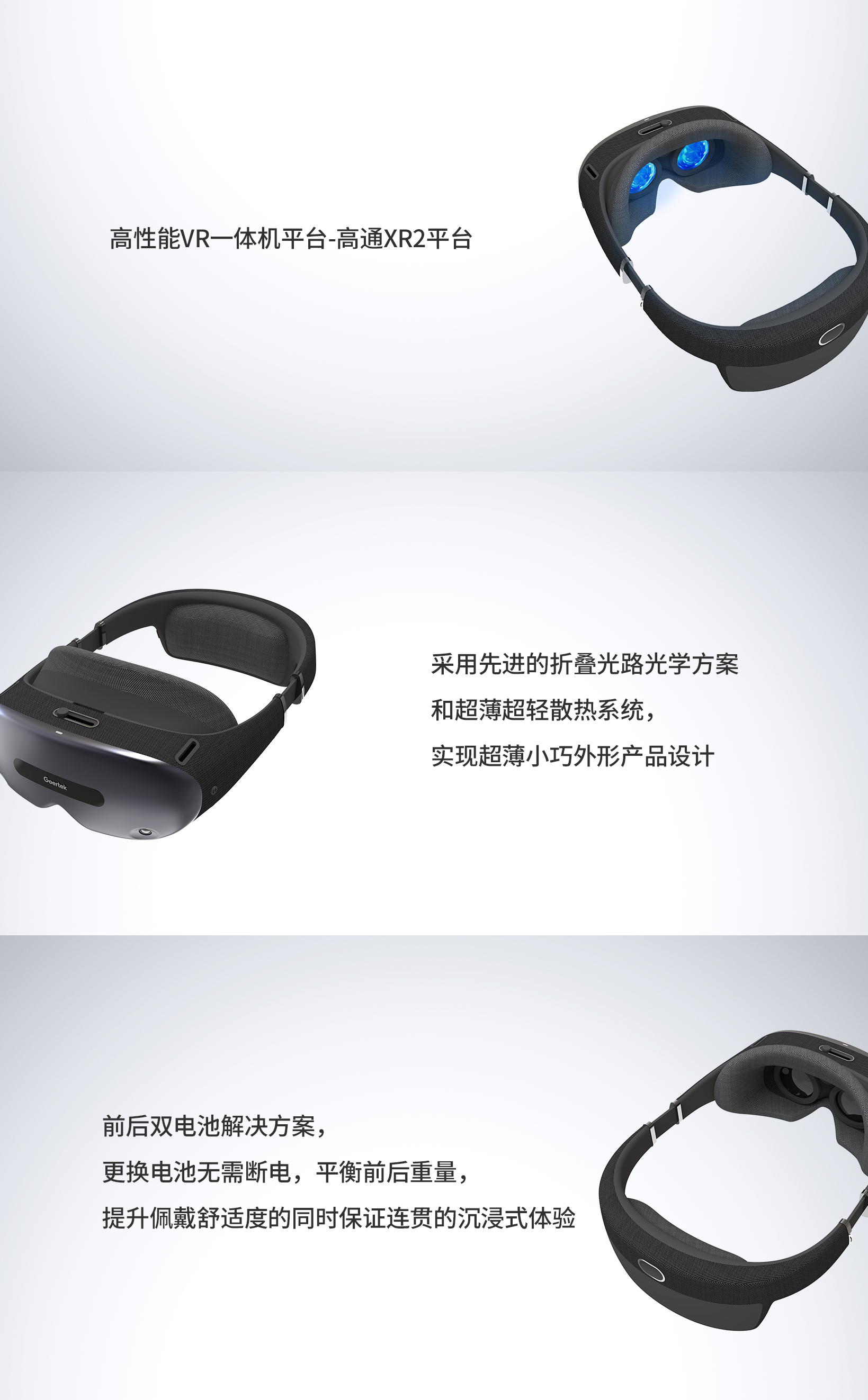 ■ 前后双电池解决方案,更换电池无需断电,提升佩戴舒适度的同时保证连贯的沉浸式体验