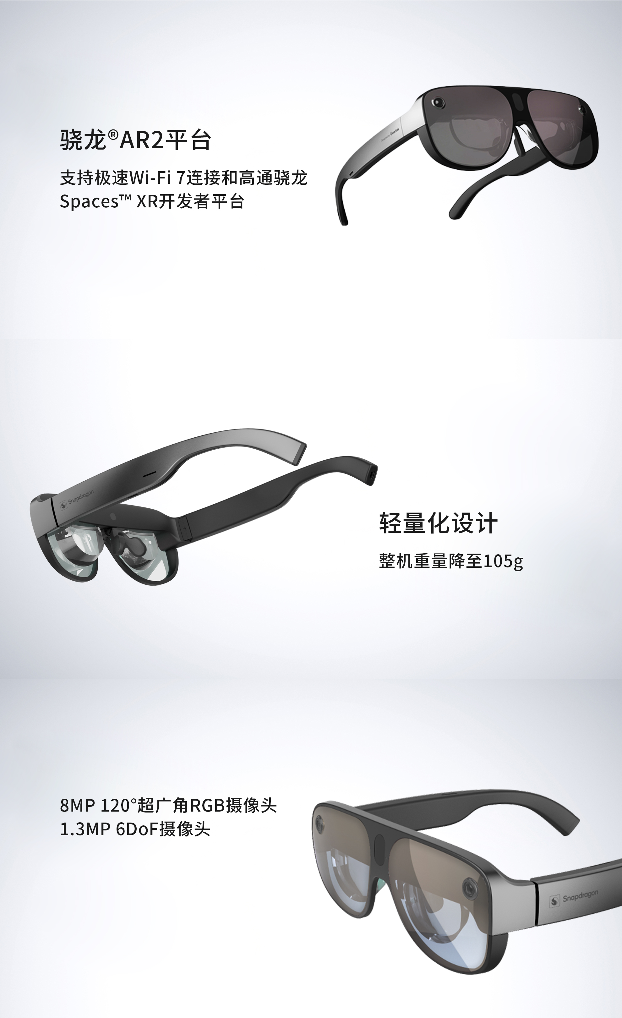 - ■ 基于骁龙®AR2 Gen1平台,支持极速Wi-Fi 7连接和高通骁龙Spaces™ XR开发者平台